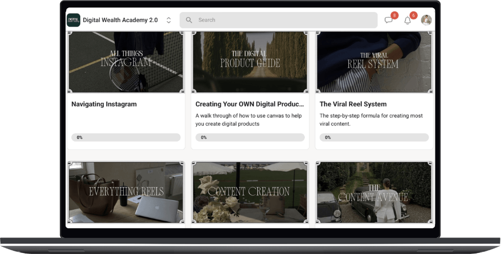 Más de 100 videos con temas de marketing, creación de productos, ventas, automatización, IA y mucho más, diseñados para llevarte de principiante a experto, permitiéndote crear tu propio negocio digital.